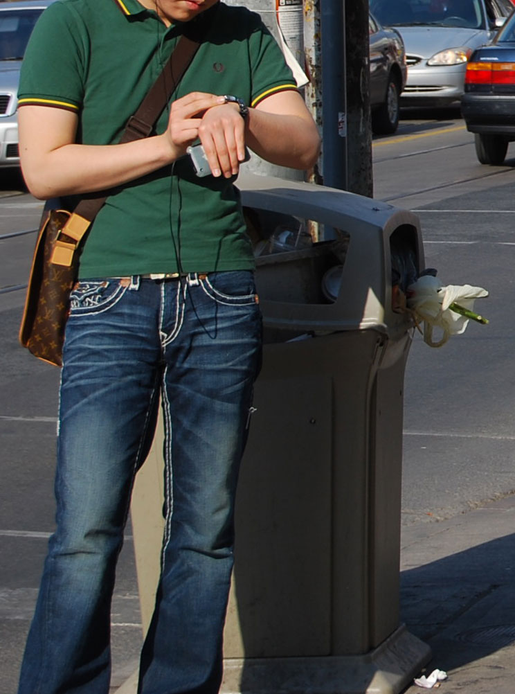 This summarizes much of my life. Waiting by a garbage can setting my watch to some imaginary time zone in which I am fully functional. The irony of this picture too is that we were walking through the bustle of Toronto’s Chinatown 2010 wondering where we could find traces of Chinatown 1980. Amazing, the number of mental garbage bins we stand beside wondering where the time went.