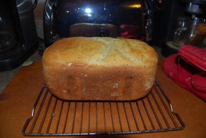 The next day I took a test drive with my new buddy. A Zojirushi bread machine with enough gearshifts to deal with the temperamental curves of GF baking. Look at it! Doesn’t it make you weep? A Poppyseed loaf – it lasted a day or two.