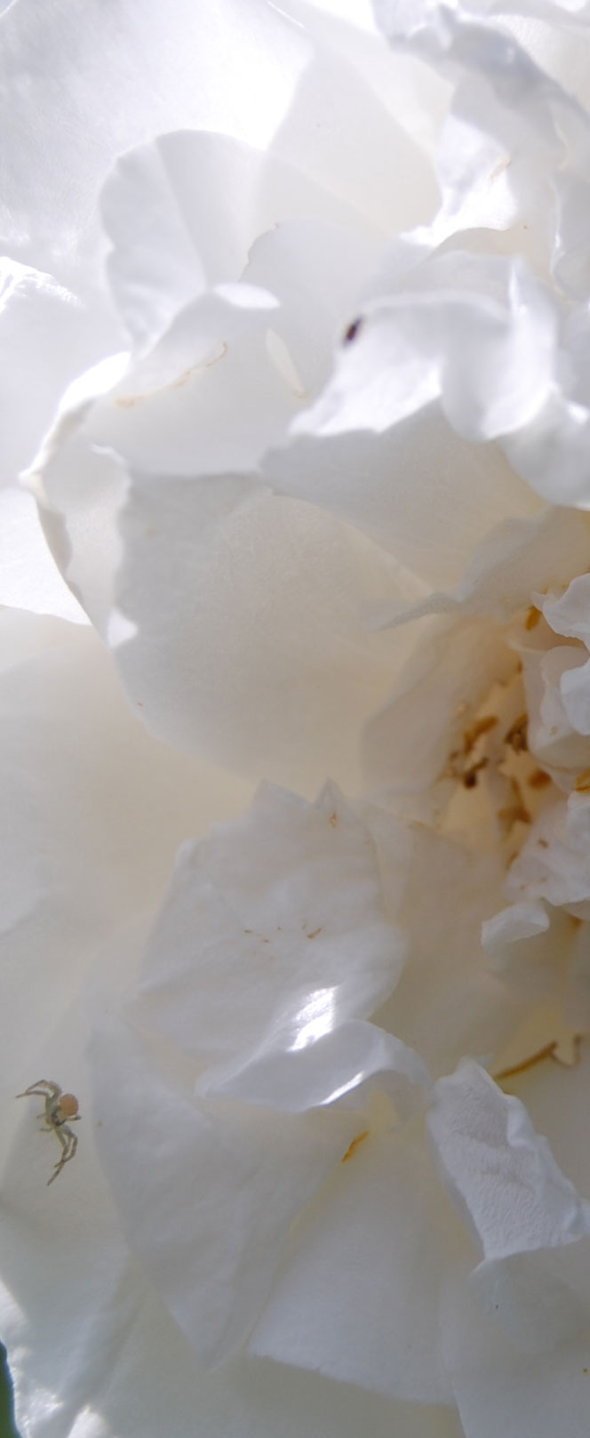 White on white is fascinating – and likely one of the most difficult ways to depict shape and texture. I took a little tour around the garden to see how an expert does it. Nature after all has been painting white-on-white for eons and perhaps there was a hint or two in how I could achieve the effects of pure-on-pure without resorting to pigment props.
