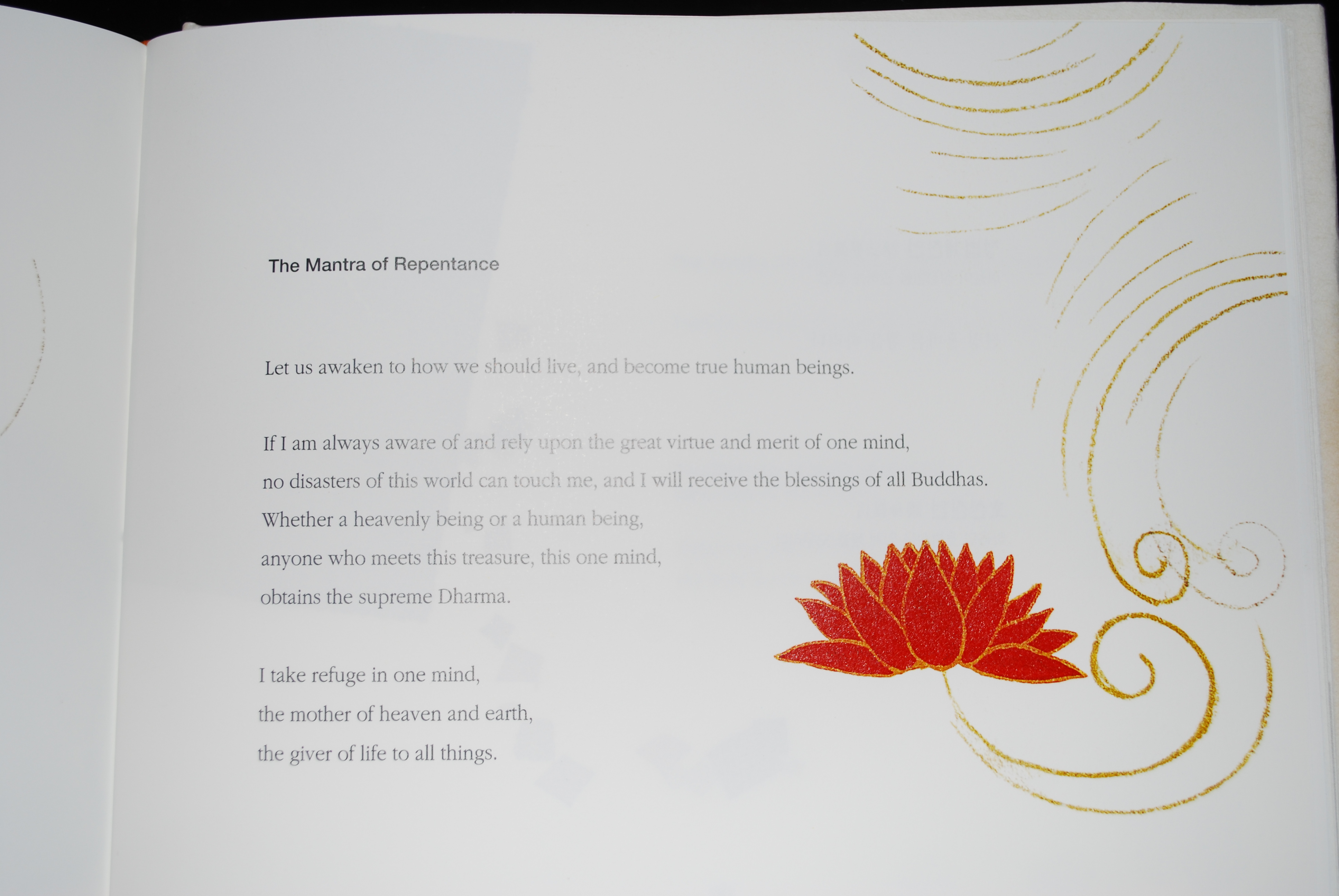 This book is an amazing opportunity to practice just that fortitude. Taken from different sutras, it is compiled as a single text and chanted daily in Korean temples. The verses call on us to devote ourselves to that one mind that is the mind of all Buddhas. Some read as short recitations that almost evoke a full prostration. Others are slightly longer tracts that evoke an inner call-and-response. Each page carries a verse, Korean on one side, English on the other, and is enriched by the stunning art of Hyo Rim.