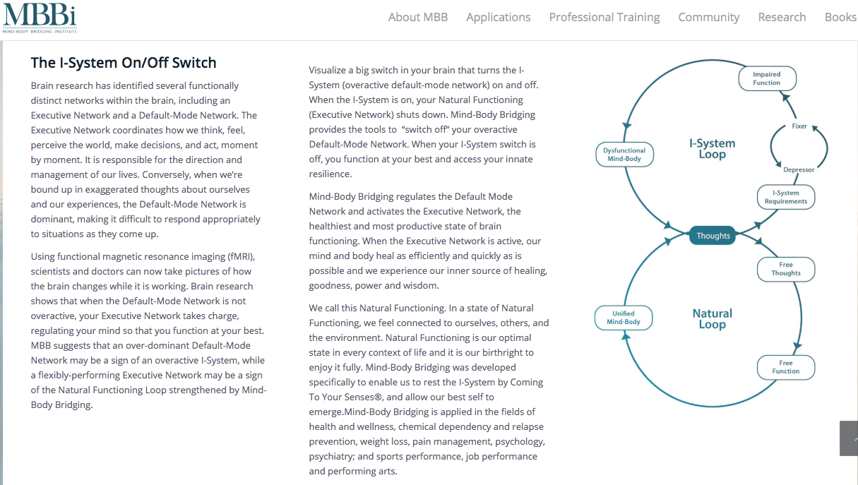 Having laid the foundations, we are moved into the Mind Body Bridging model, which in my reading seems to be a way of using the Body Scan with written reflections that explore our assumptions and self-made rules of how the world should serve us. The I(dentity)-System was developed by physician Stanley Block and is intended to uncover that ways the identity we developed to survive developmentally have become obstacles to healthy relationships. The I-System overactivity becomes the cause of our symptoms of distress.