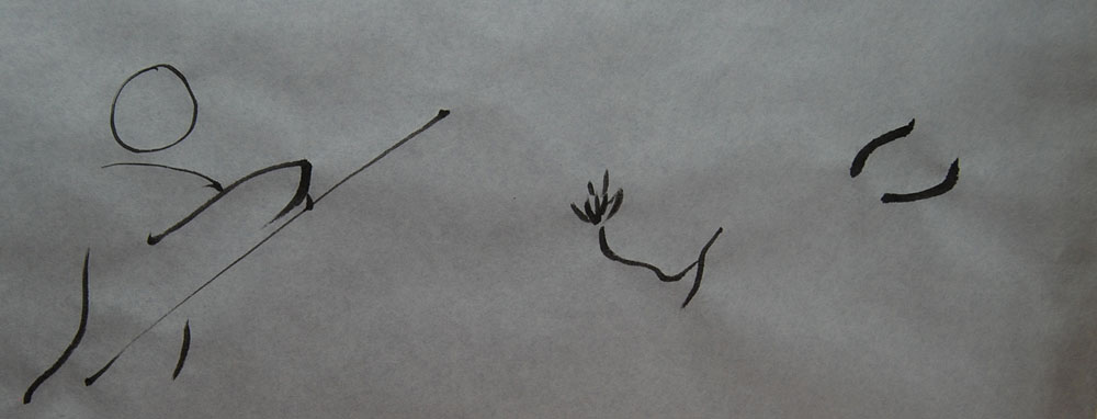 The Ox takes on what I see myself to be. Infatuated with the idea of who I am, I infuse the Ox with this idea of Me and set off in pursuit. Sounds of the breeze in sumi-e pines and painted rice cakes: at this first sighting, the Ox is just another play of ink and fibres. But oh! how I long to rescue it.