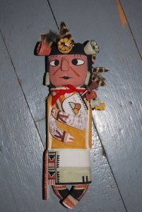 Photo: The doll is a Compassion Katsina by Brent Brokeshoulder of the Tobacco Clan from Hotevilla Village. Its crossed eyes, twisted legs and arms represent what is wounded or misshapen in us that needs compassion.